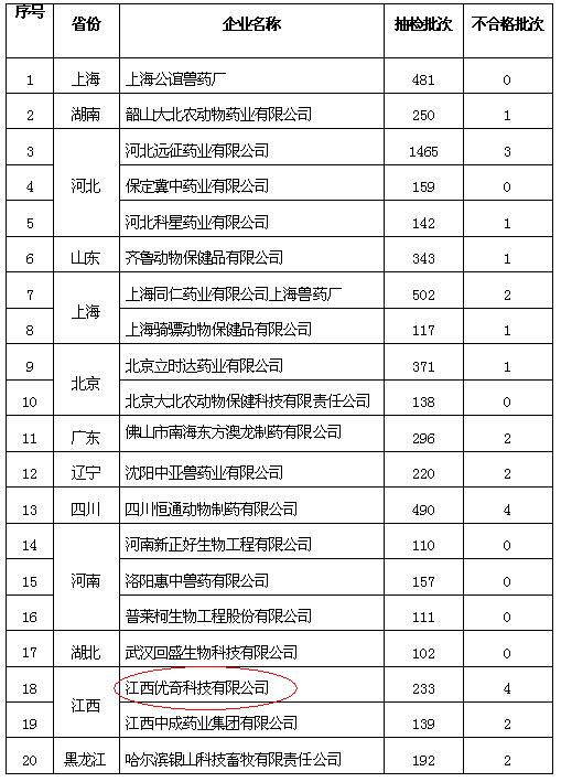 據悉,這些企業近年被抽檢次數超過百次,抽檢合格率超過98%,即使抽檢不合格,也少有因產品質量的問題。產品不確認率低于4%。這些企業為畜牧業的保駕護航提供了不可磨滅的貢獻。今后這20家企業均由中國醫藥品檢查所進行抽檢,其他任務承擔單位只對其產品進行監督檢查,不對其產品進行抽樣檢驗。