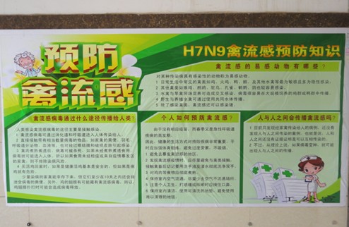 學(xué)院在走廊等顯著位置張貼H7N9禽流感預(yù)防知識(shí)等海報(bào)