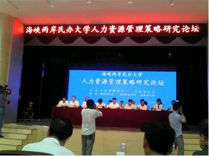 5月24日,工商學(xué)院副院長胡國輝應(yīng)邀出席參加了在南昌職業(yè)學(xué)院舉辦的海峽兩岸民辦大學(xué)人力資源管理策略研究論壇。出席本次論壇有全國政協(xié)常委、原省政協(xié)副主席陳清華,省政協(xié)港澳臺僑委員會專職副主任、省臺辦副主任簡立明,省教育廳副廳長宋雷鳴,以及省教育廳、省市臺辦相關(guān)部門負責(zé)人和臺灣代民辦高校表團、大陸民辦高校代表團近200人。