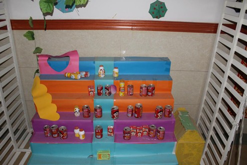 評(píng)比活動(dòng)中,老師們積極主動(dòng)想辦法、動(dòng)腦筋,利用空易拉罐、塑料瓶、廢硬殼紙等廢棄物品,做出各種各樣的有趣的教具、小盆景等,還把各班的墻面、地面等進(jìn)行重新布置。老師們根據(jù)本班活動(dòng)區(qū)和主題墻創(chuàng)設(shè)新環(huán)境,活動(dòng)區(qū)有建構(gòu)、藝術(shù)、科學(xué)等區(qū)域,主要作為孩子自由活動(dòng)的空間;主題墻根據(jù)教學(xué)計(jì)劃創(chuàng)設(shè),用于輔助教學(xué)。她們剪的剪、畫的畫、配合非常默契,從環(huán)境布局、材料添置,到幼兒學(xué)、玩教具內(nèi)容的豐富,事無巨細(xì),每一樁、每一件都融入了集體的智慧。