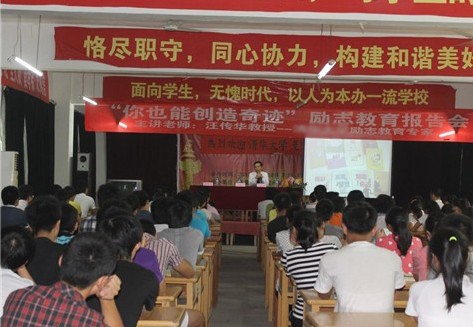 8月24日,南昌現代外國語學校迎賓校區組織舉辦了面向該校全體高三年級學生的“你也能創造奇跡”勵志教育報告會,由國內著名勵志教育專家汪傳華主講。